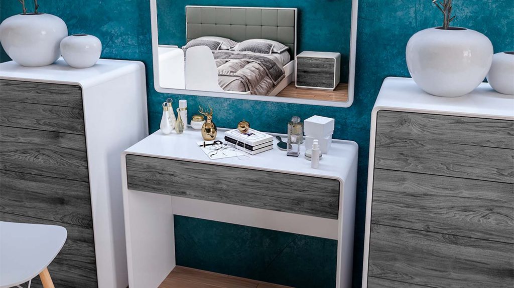 Das Möbelangebot umfasst Betten und Kopfteile, Kleiderschränke und Kommoden, Nachttische und Schminktische, Spiegel und andere funktionale Elemente, die ein komfortables und harmonisches Interieur schaffen.